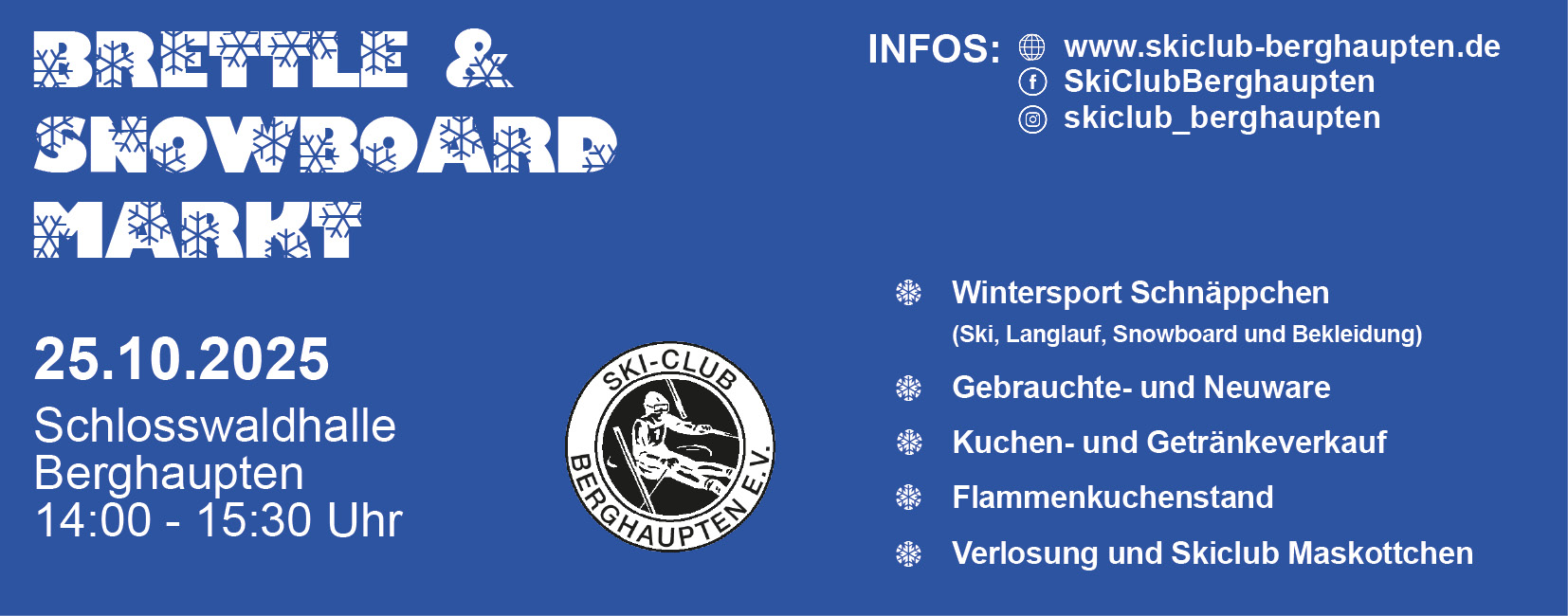 Wir laden Euch wieder ein zu unserem jährlichen Brettlemarkt in die Schlosswaldhalle Berghaupten.